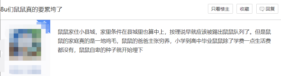 在这些鼠鼠文学的自述中,更多的是关于毕业之后面对巨大压力所带来的落差感和无力感。
