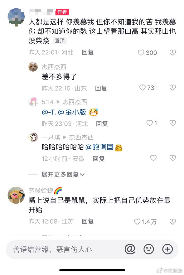 而在如今的“鼠鼠文学”的评论区,不少鼠鼠也选择用这种“不比较”的方式开导其他陷入内耗的鼠鼠们。