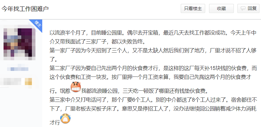 有人辗转在不同的工厂,最后总算找到个靠谱的,并分享起了厂里还算不错的伙食。