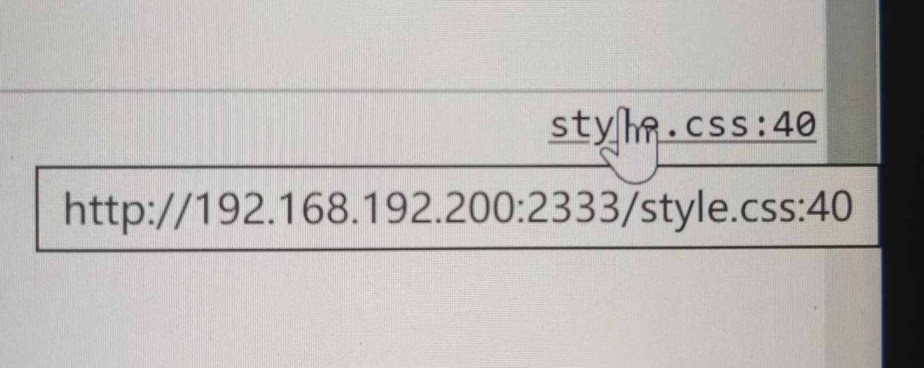 确定好自己想要的颜色值以后,可以将光标移至右上角css文件名这里,不需要点击,停留在文件名上即可看到css文件相对于网页的路径,比如说这里的主页面地址为192.168.192.200:2333,路径后就是style.css,说明该文件在网页的根目录中